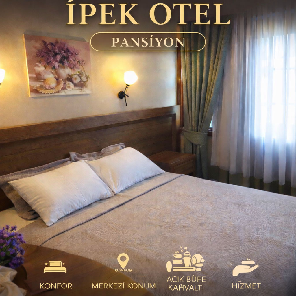 Toplam 25 odası bulunan İpek Hotel, farklı konaklama ihtiyaçlarına uygun oda seçenekleri sunmaktadır. Otelimizde; 2 kişilik odalar 3 kişilik odalar 4 kişilik aile odaları bulunmaktadır. Tüm odalarımız konforlu bir konaklama deneyimi sunmak için düzenli ve ferah bir şekilde hazırlanmıştır. Aileler, çiftler ve arkadaş grupları için uygun oda seçenekleri ile ekonomik bir tatil imkanı sunuyoruz.Havuz ve Dinlenme Alanları